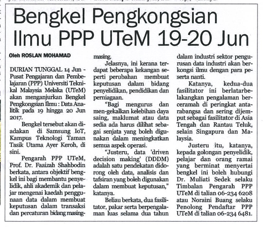 Bengkel Perkongsian Ilmu PPP UTeM 19-20 Jun