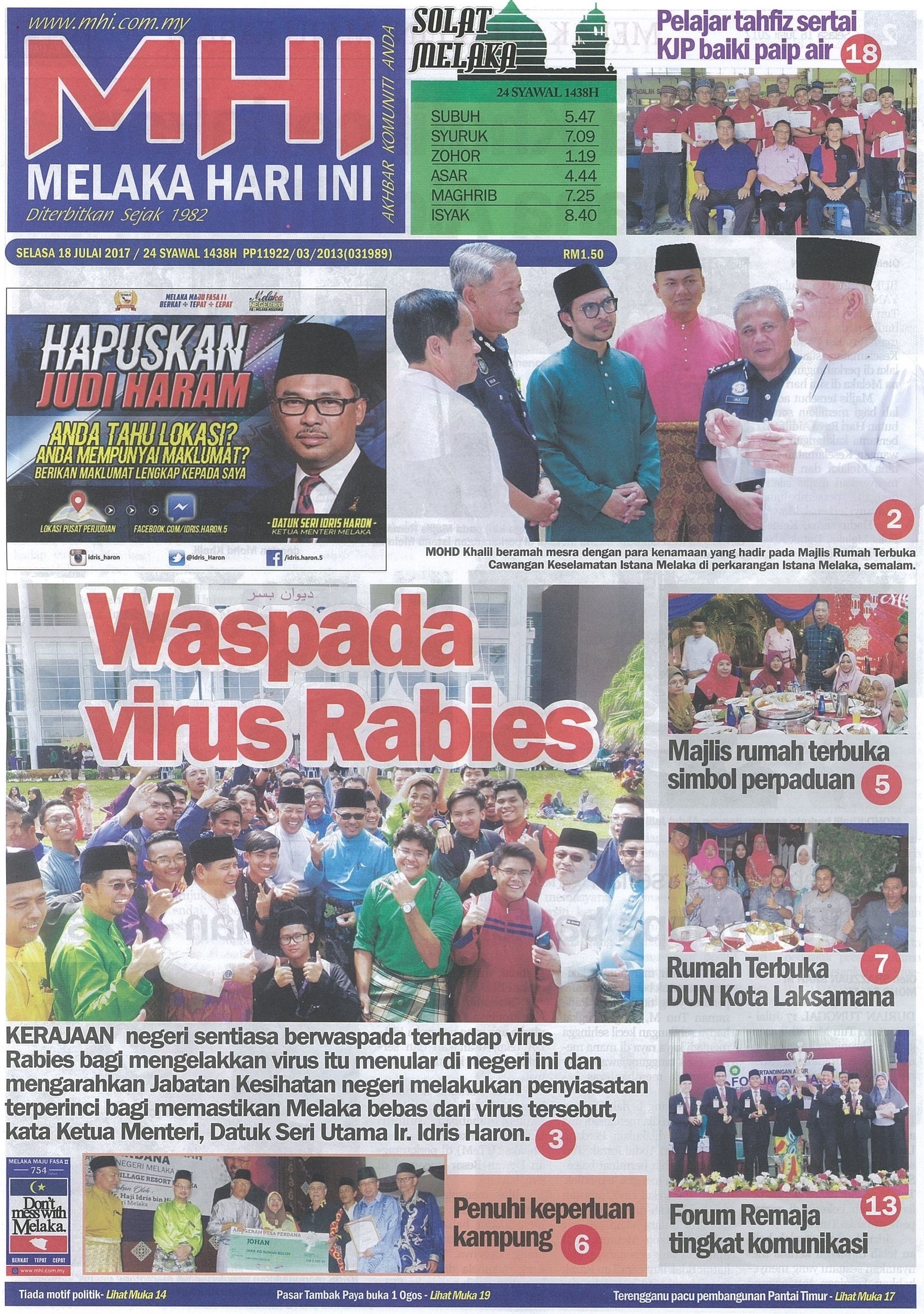 Waspada Virus Rabies (Halaman Depan Akhbar)