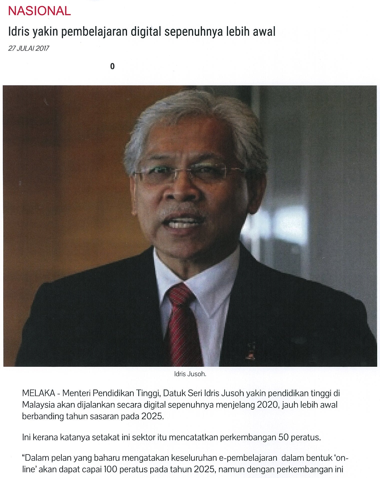 Idris yakin pembelajaran digital sepenuhnya lebih awal