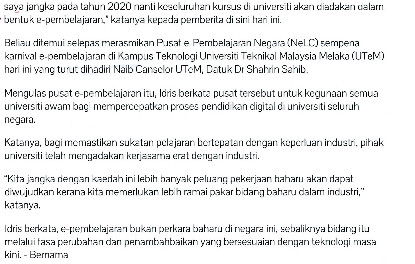 Idris yakin pembelajaran digital sepenuhnya lebih awal (part 2)