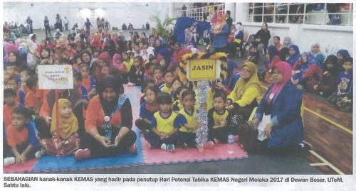 Sebahagian kanak-kanak KEMAS yang hadir pada penutup Hari Potensi Tabika KEMAS Negeri Melaka 2017 di Dewan Besar UTeM, Sabtu lalu