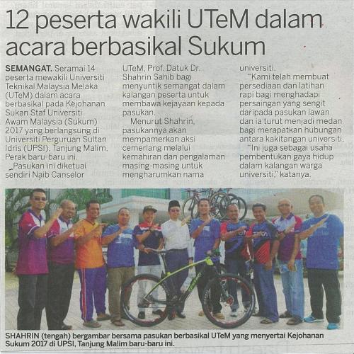 12 peserta wakili UTeM dalam acara berbasikal SUKUM
