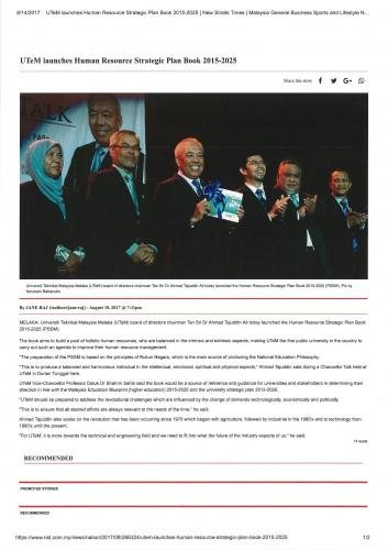 UTeM Launches Human Resource Strategic Plan Book 2015-2025