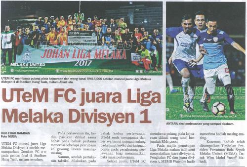 UTeM FC JUARA LIGA MELAKA DIVISYEN 1