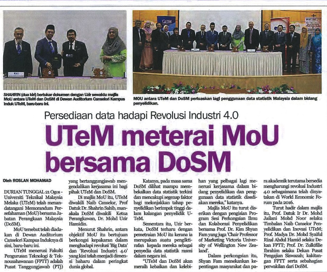 UTeM meterai MoU bersama DoSM