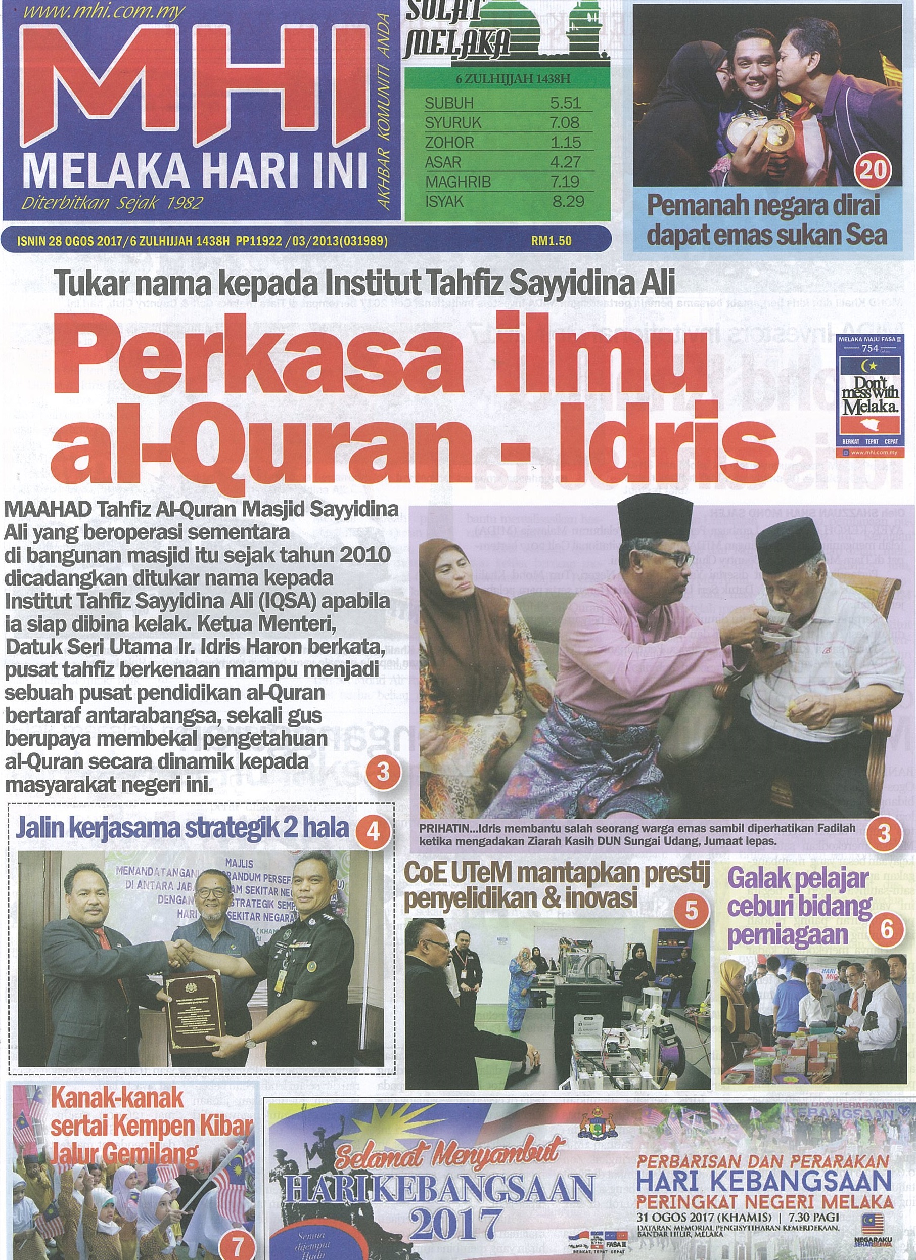 CoE UTeM mantapkan prestij penyelidikan dan inovasi (Halaman depan akhbar)