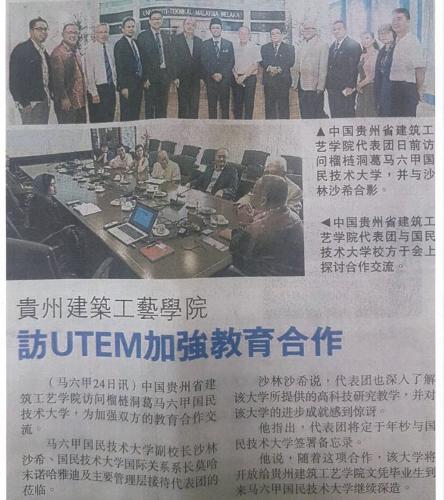 Guizhou Polytechnic of Construction visit UTeM to strengthen education cooperation