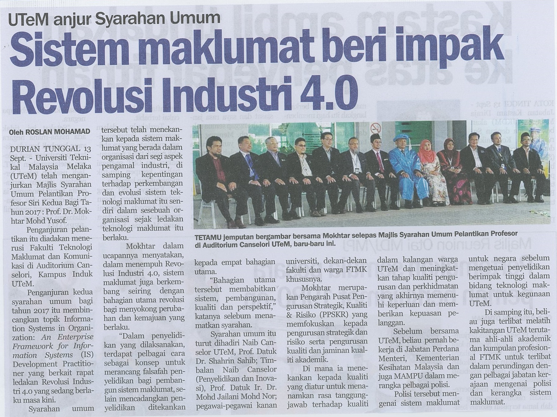 UTeM ANJUR SYARAHAN UMUM : SISTEM MAKLUMAT BERI IMPAK REVOLUSI INDUSTRI 4.0