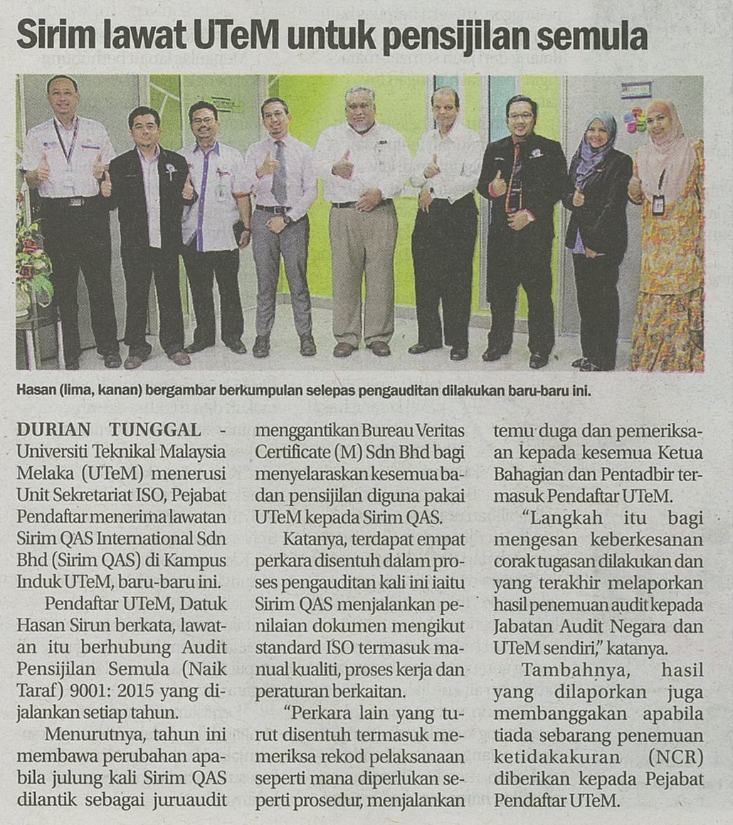 SIRIM LAWAT UTeM UNTUK PENSIJILAN SEMULA