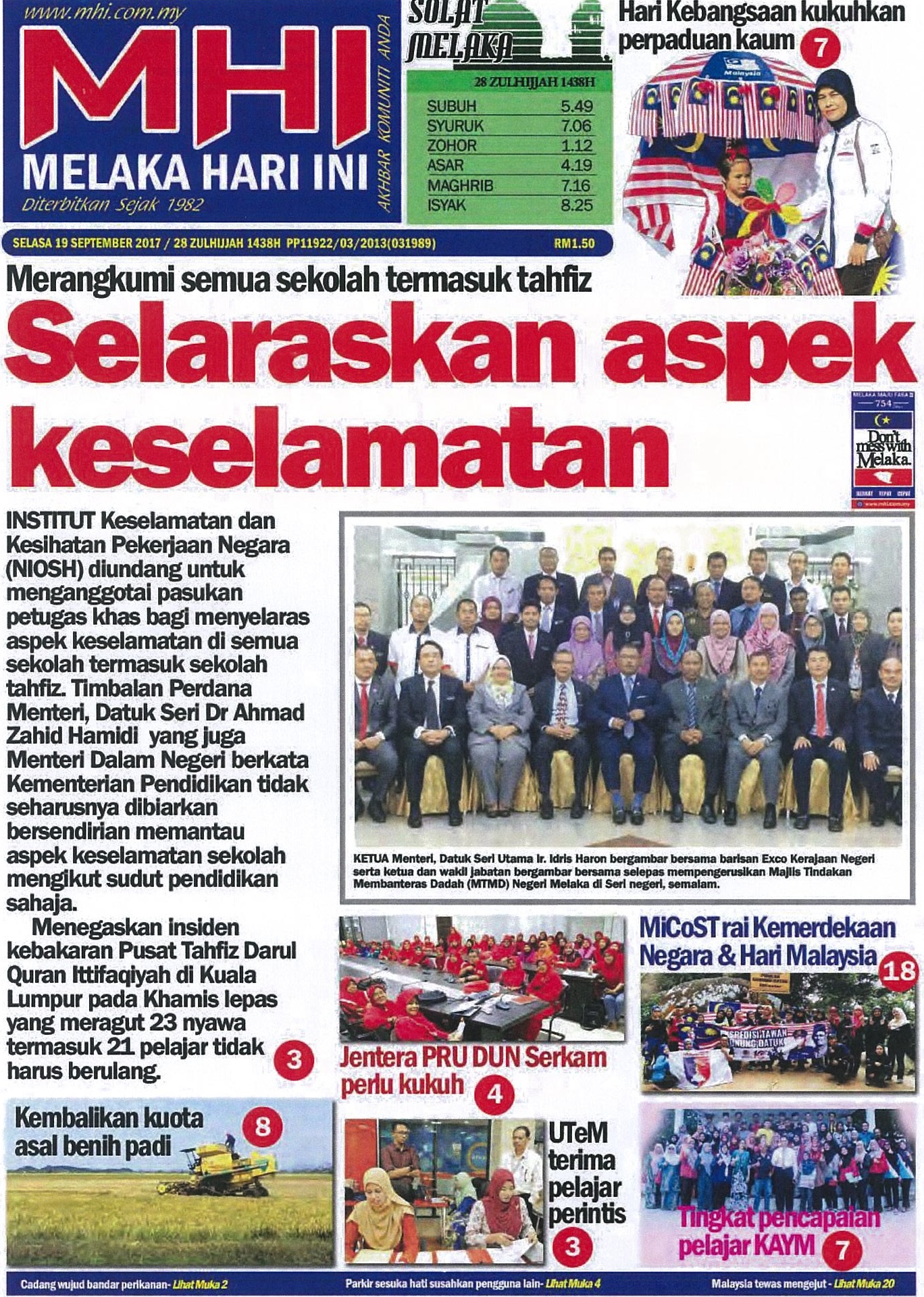 UTeM terima pelajar perintis (Halaman depan akhbar)