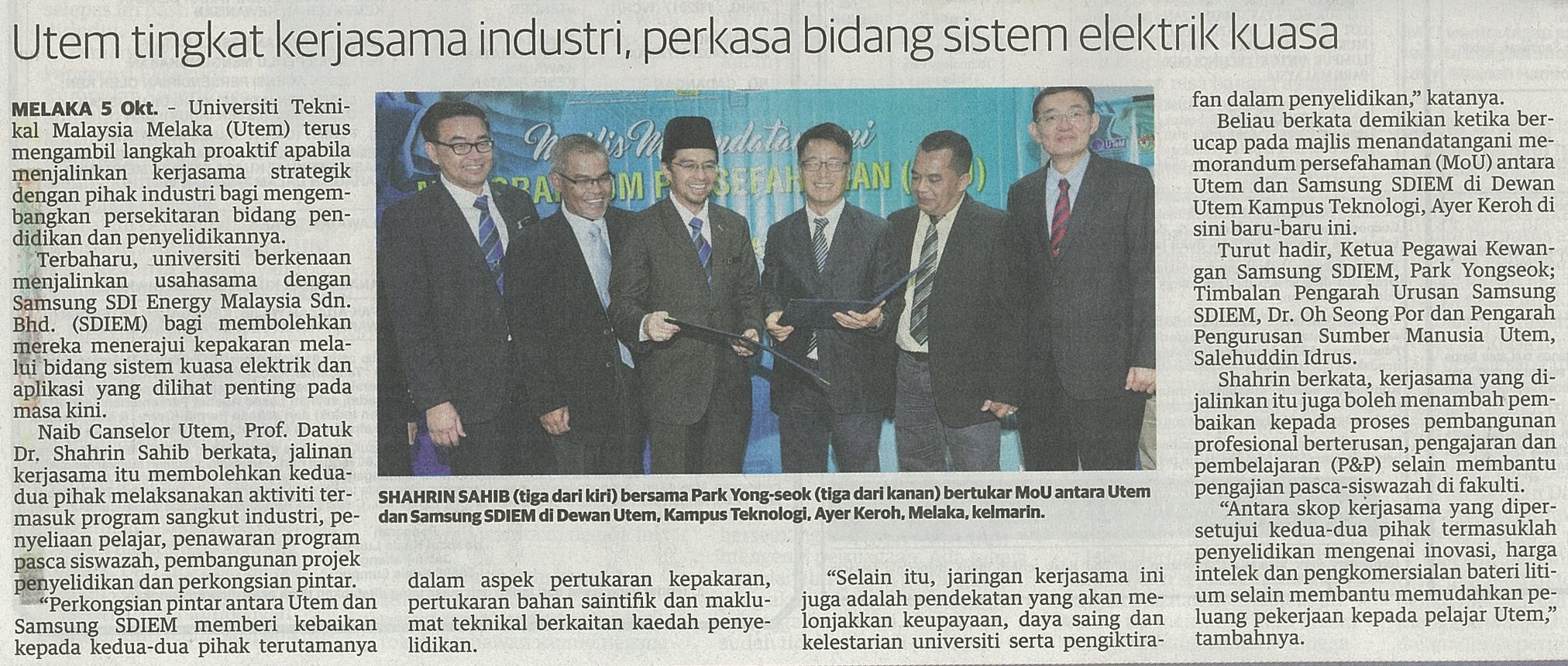 UTeM tingkat kerjasama industri, perkasa bidang sistem elektrik kuasa