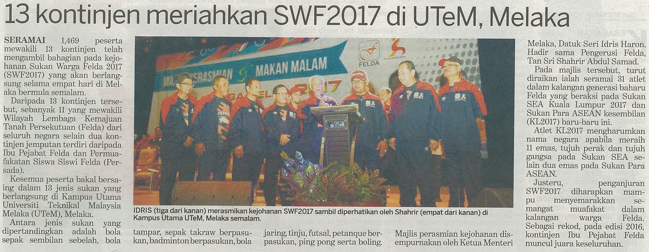 13 kontinjen meriahkan SWF2017 di UTeM, Melaka