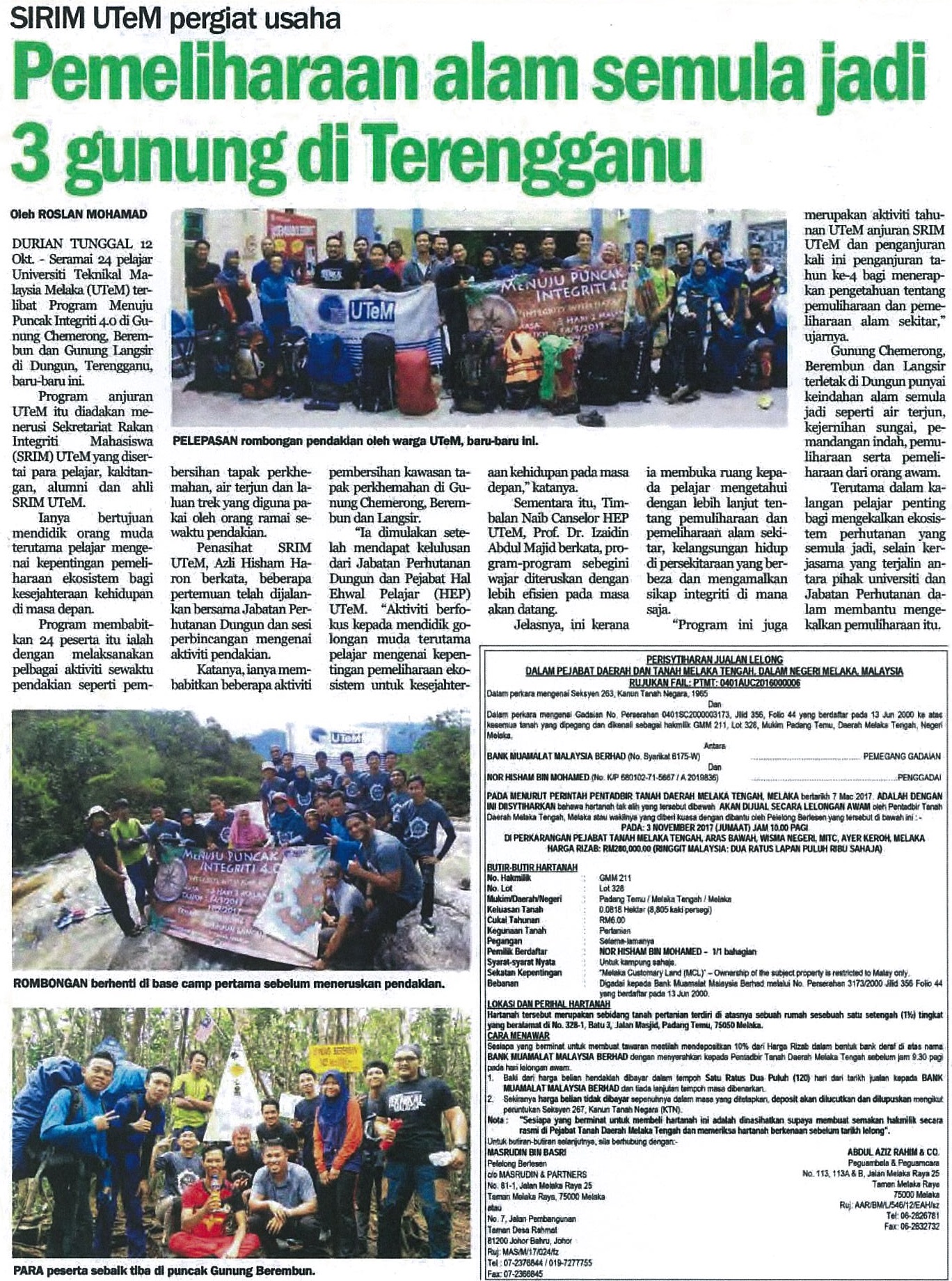 Pemeliharaan alam semula jadi 3 gunung di Terengganu