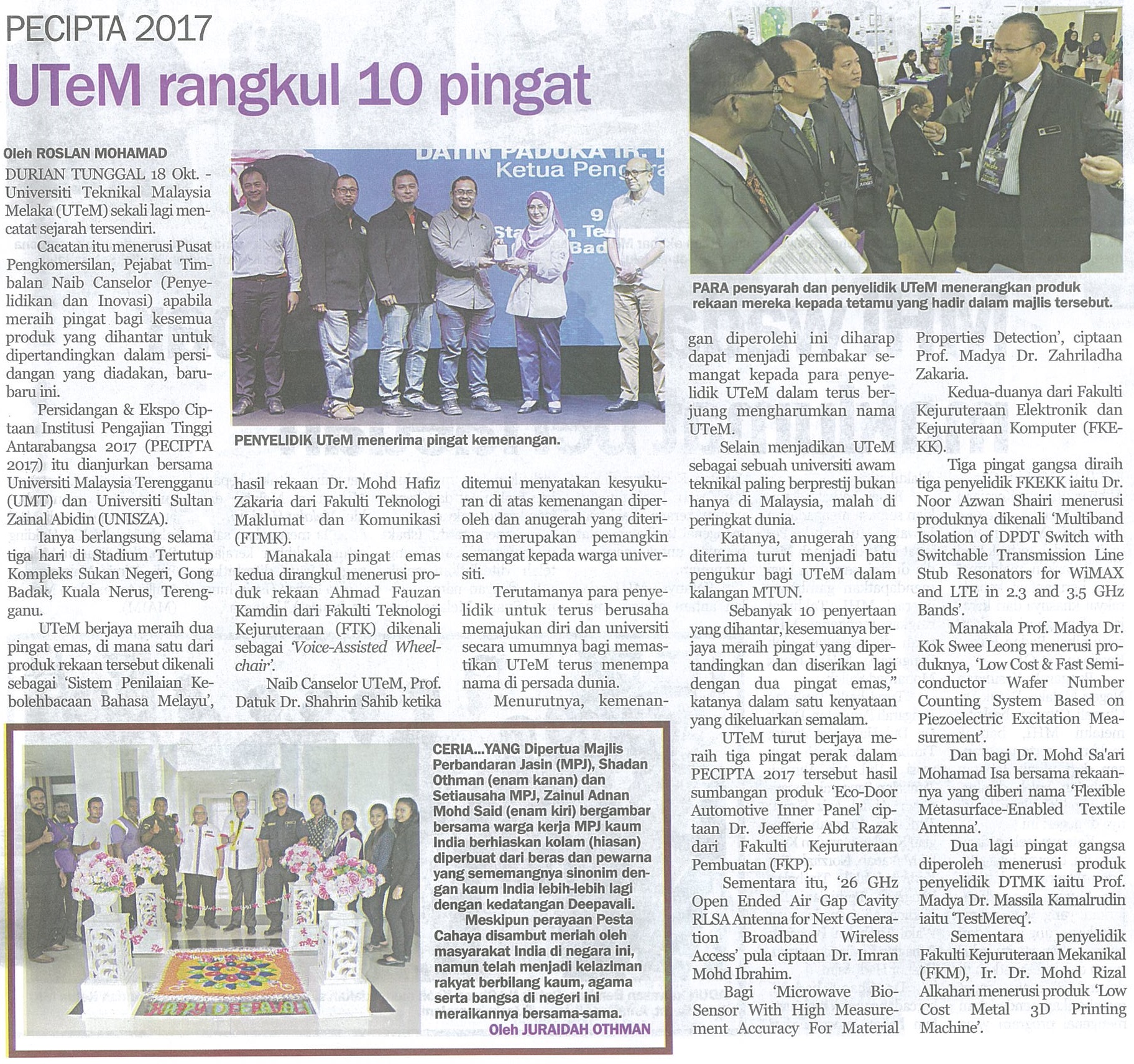 PECIPTA 2017 UTeM rangkul 10 pingat