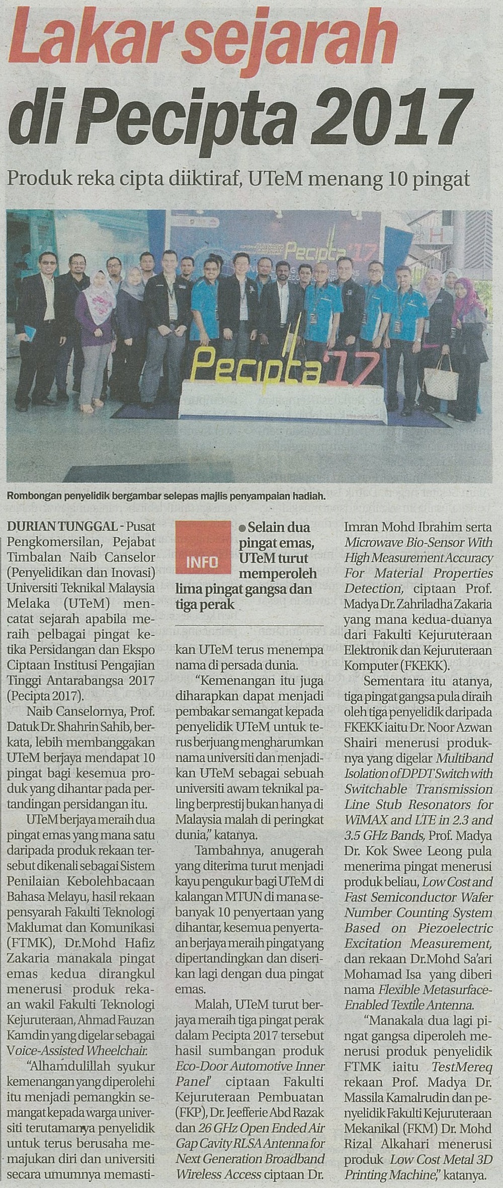 Lakar sejarah di Pecipta 2017 (Produk reka diiktiraf, UTeM menang 10 pingat