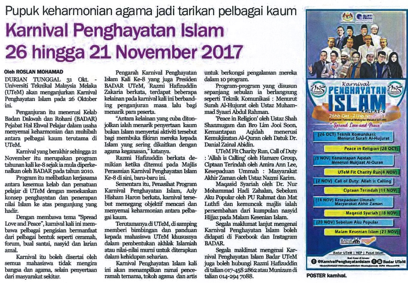 Karnival Penghayatan Islam 26 hingga 21 November 2017