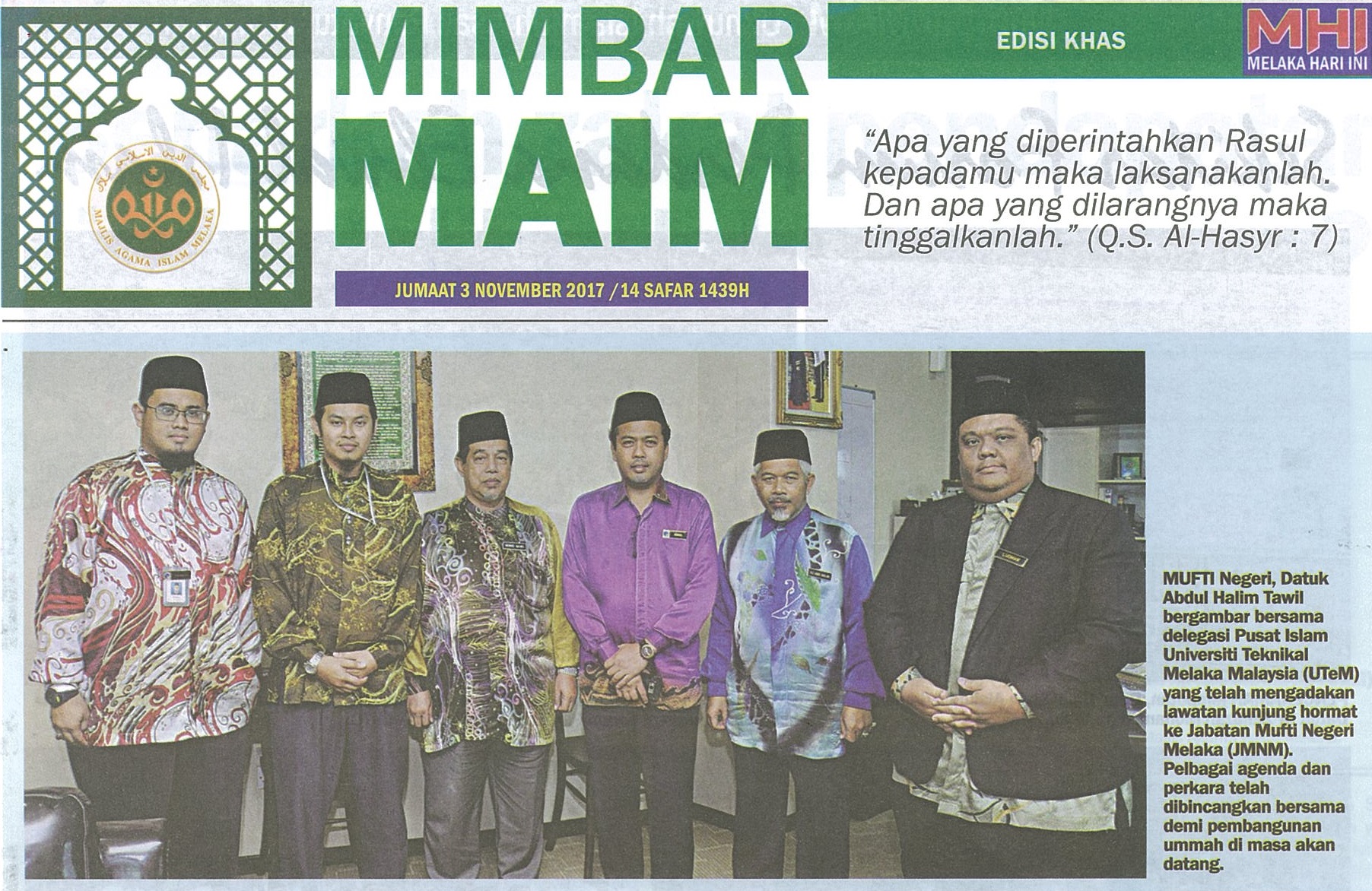MUFTI Negeri, Datuk Abdul Halim Tawil bergambar bersama delegasi Pusat Islam UTeM yang telah mengadakan lawatan kunjung hormat ke Jabatan Mufti Negeri Melaka (JKMM)