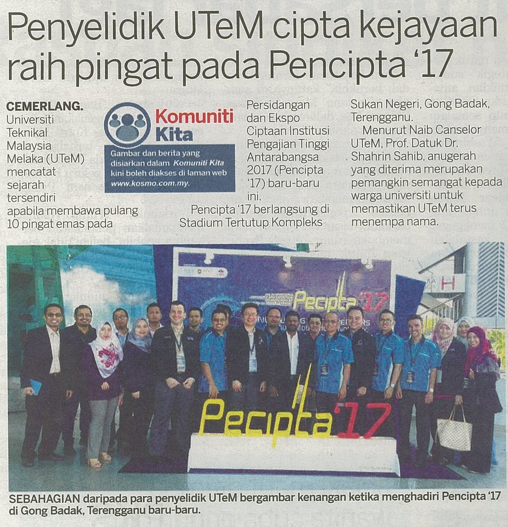 Penyelidik UTeM cipta kejayaan raih pingat pada Pencipta '17