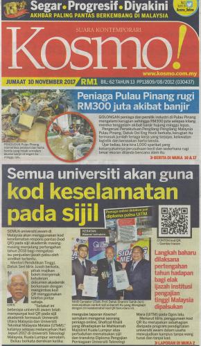 Semua universiti akan guna kod keselamatan pada sijil (Halaman depan akhbar)