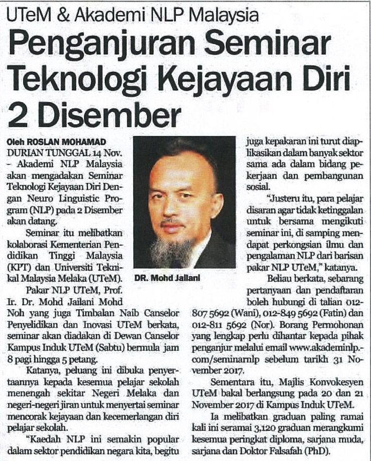 Penganjuran Seminar Teknologi Kejayan Diri 2 Disember