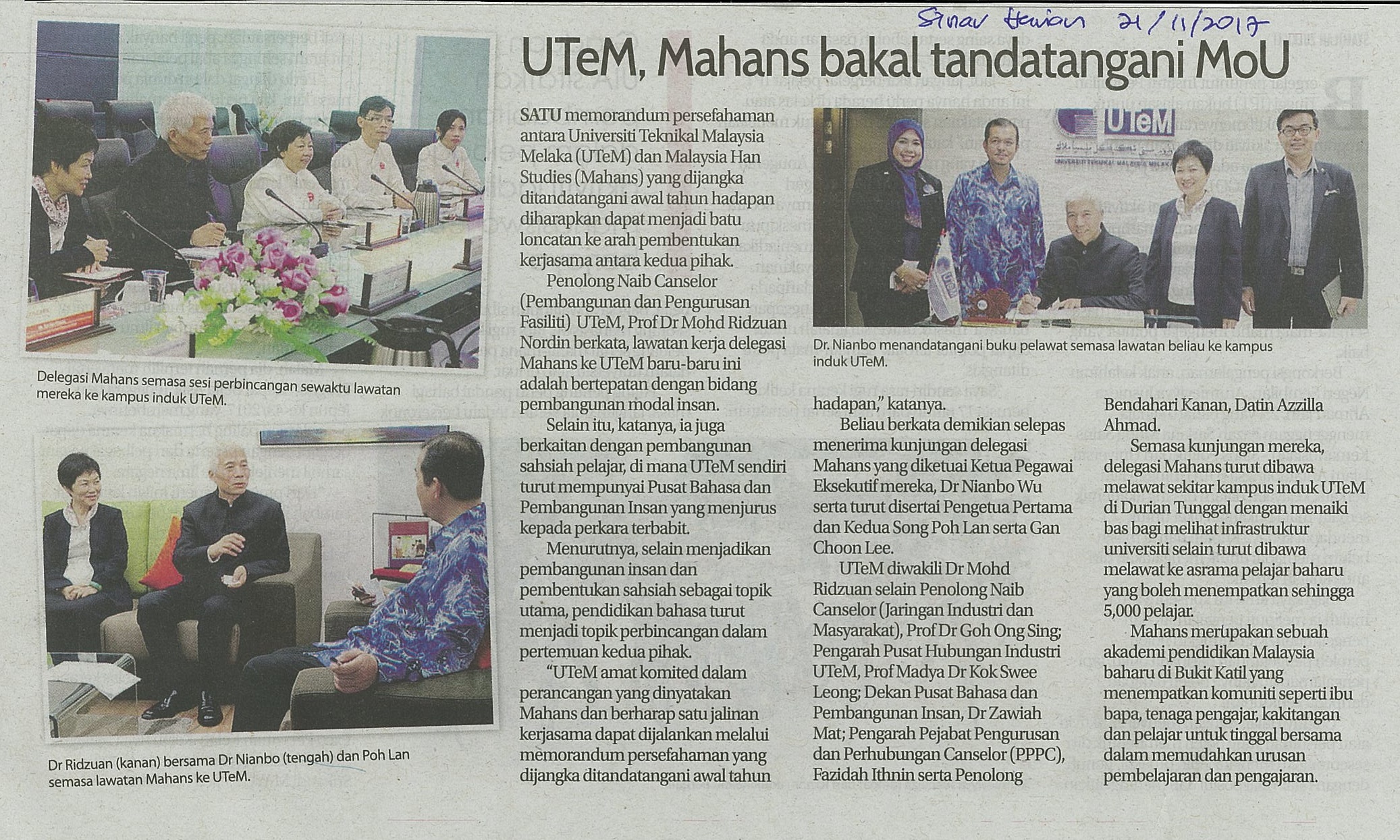 UTeM, MAHANS BAKAL TANDATANGANI MoU