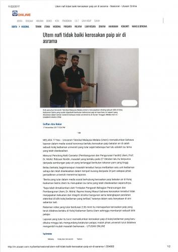 UTeM NAFI TIDAK BAIKI KEROSAKAN PAIP DI ASRAMA