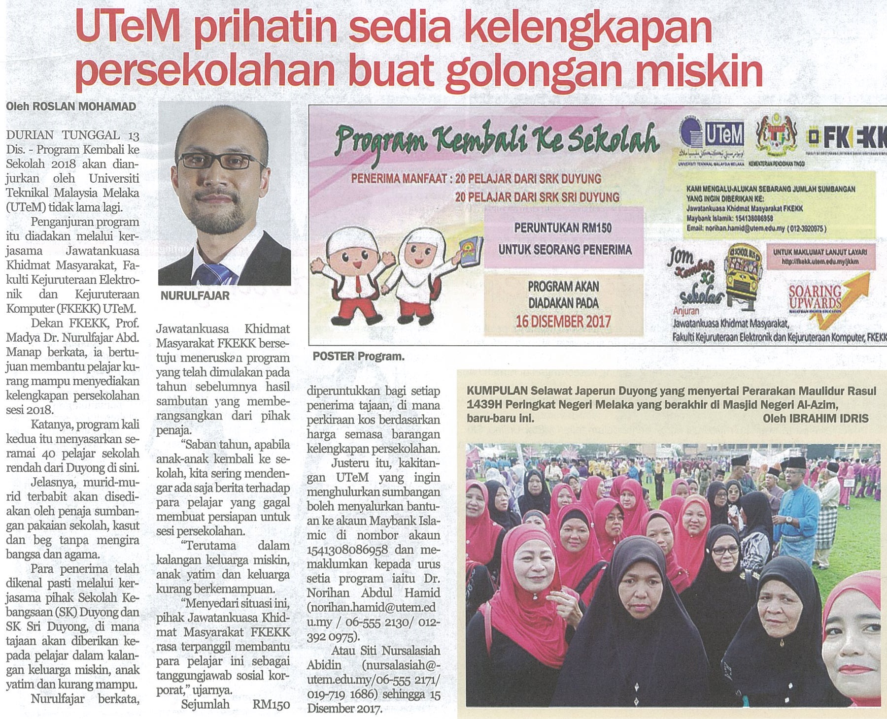 UTeM prihatin sedia kelengkapan persekolahan buat golongan miskin
