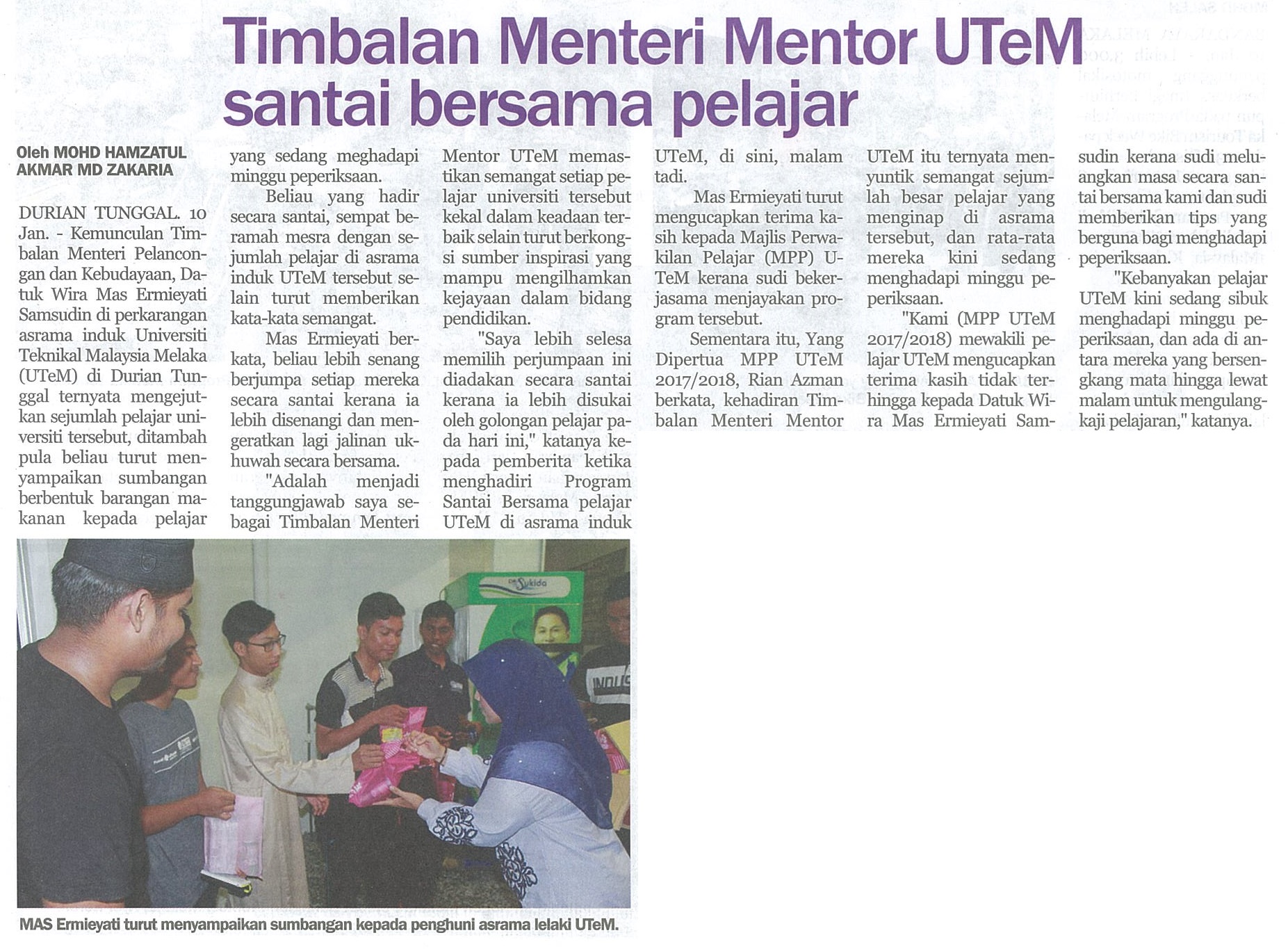 Timbalan Menteri Mentor UTeM Santai Bersama Pelajar