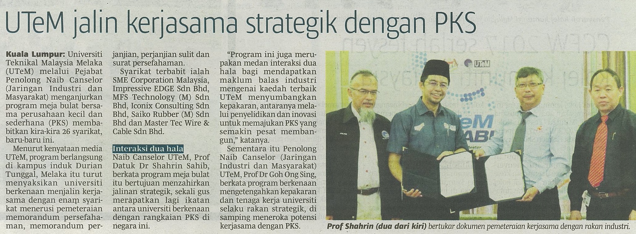 UTeM jalin kerjasama strategik dengan PKS