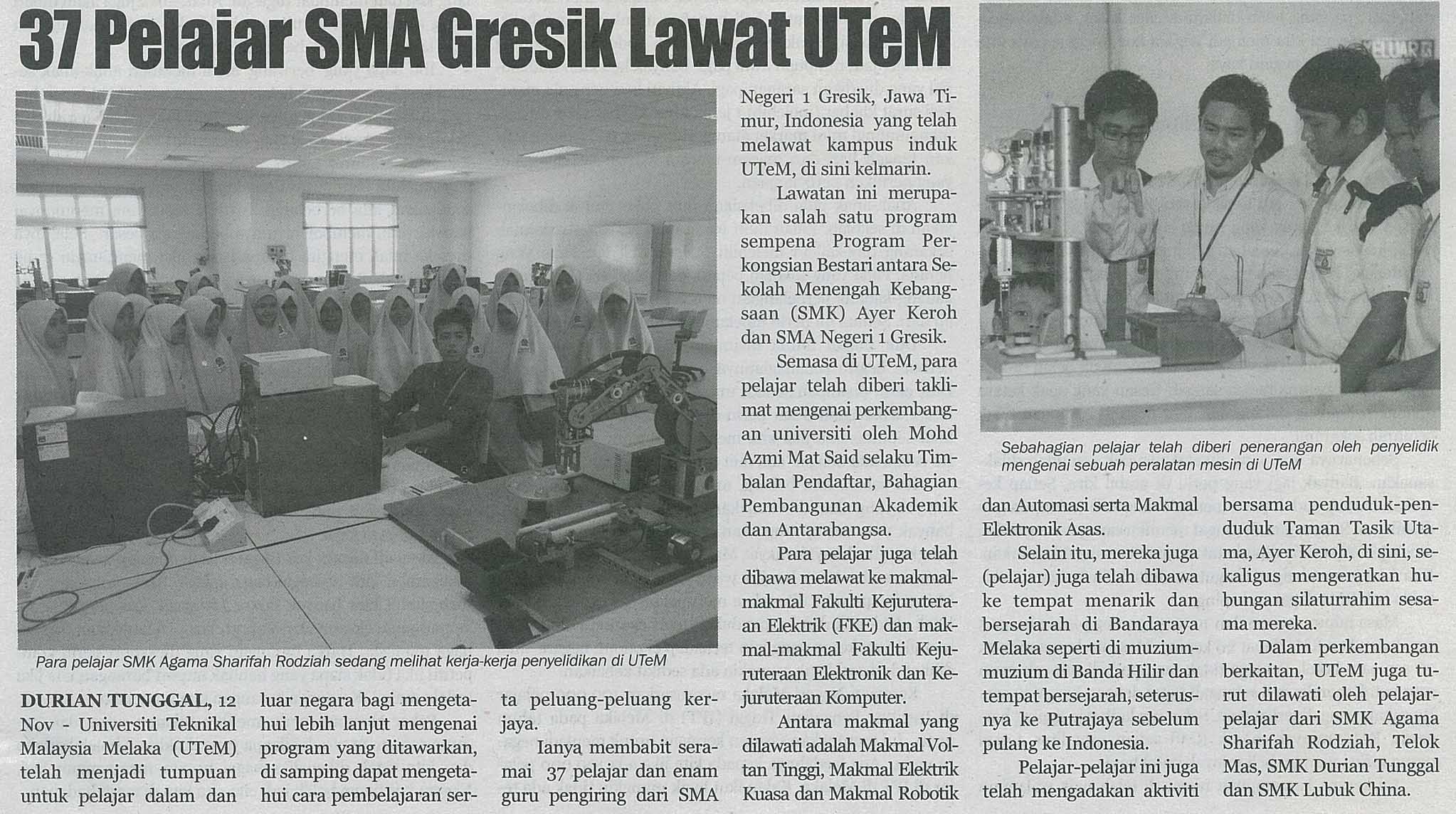 37 Pelajar SMA Gresik Lawat UTeM