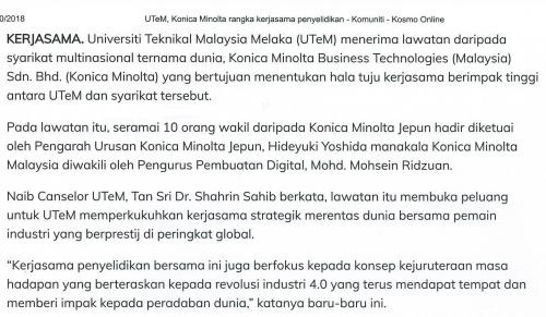 UTeM, Konica Minolta rangka kerjasama penyelidikan