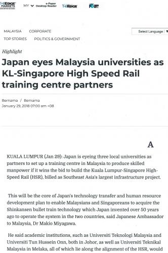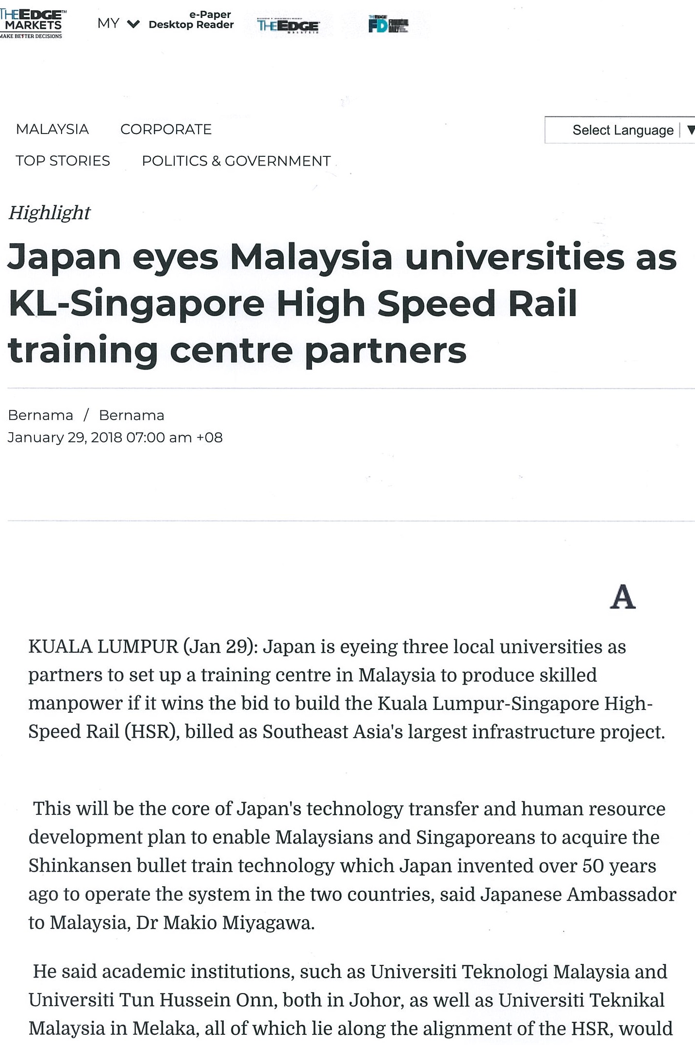 Japan eyes Malaysia universities as KL-Singapore High Speed Rail Training centre partners (Part 1)