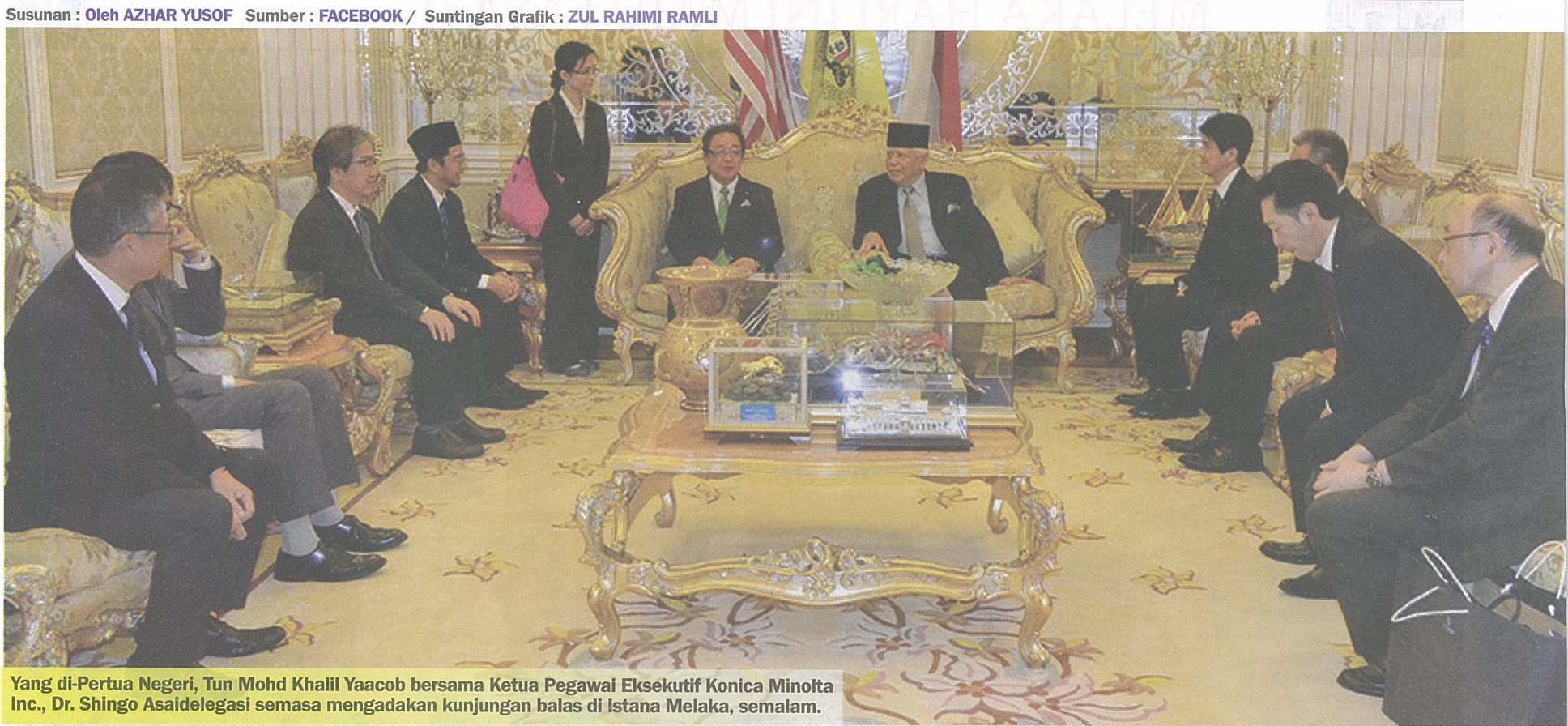 Yang di-Pertua Negeri, Tun Mohd Khalil Yaacob bersama Ketua Pegawai Eksekutif Konica Minolta Inc, Dr. Shingo Asaidelegasi semasa mengadakan kunjungan balas di Istana Melaka semalam
