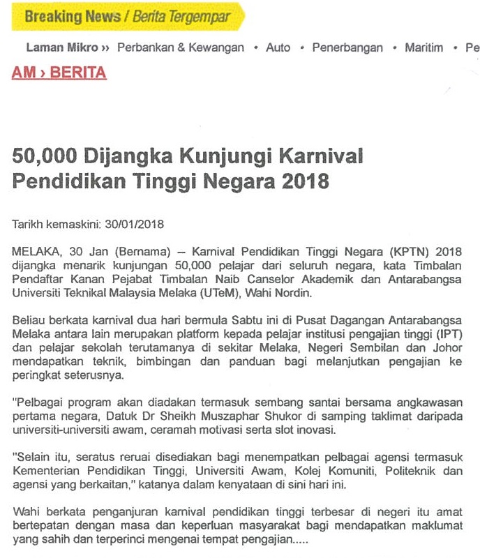 50,000 dijangka kunjungi Karnival Pendidikan Tinggi Negara 2018