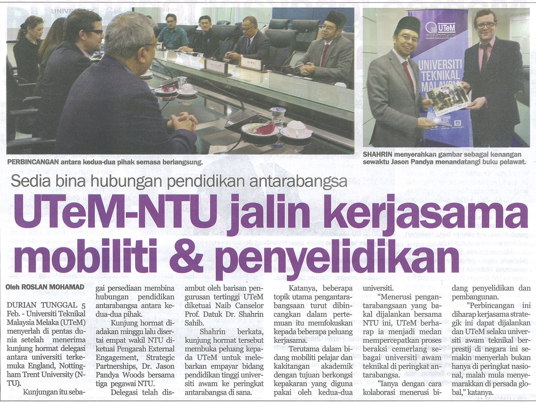 UTeM-NTU jalin kerjasama mobiliti & penyelidikan
