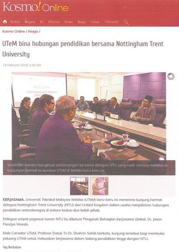 UTeM bina hubungan pendidikan bersama Nottingham Trent University