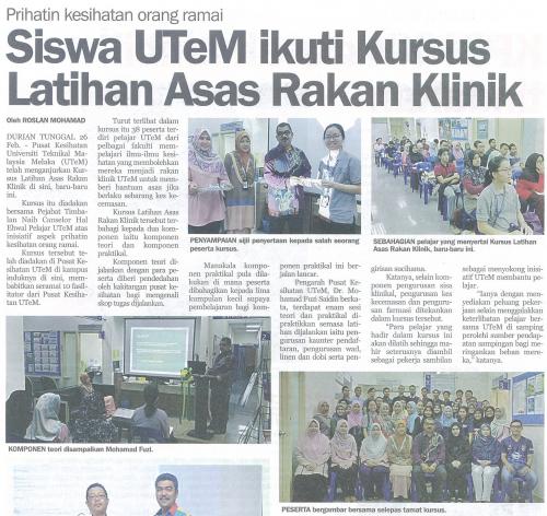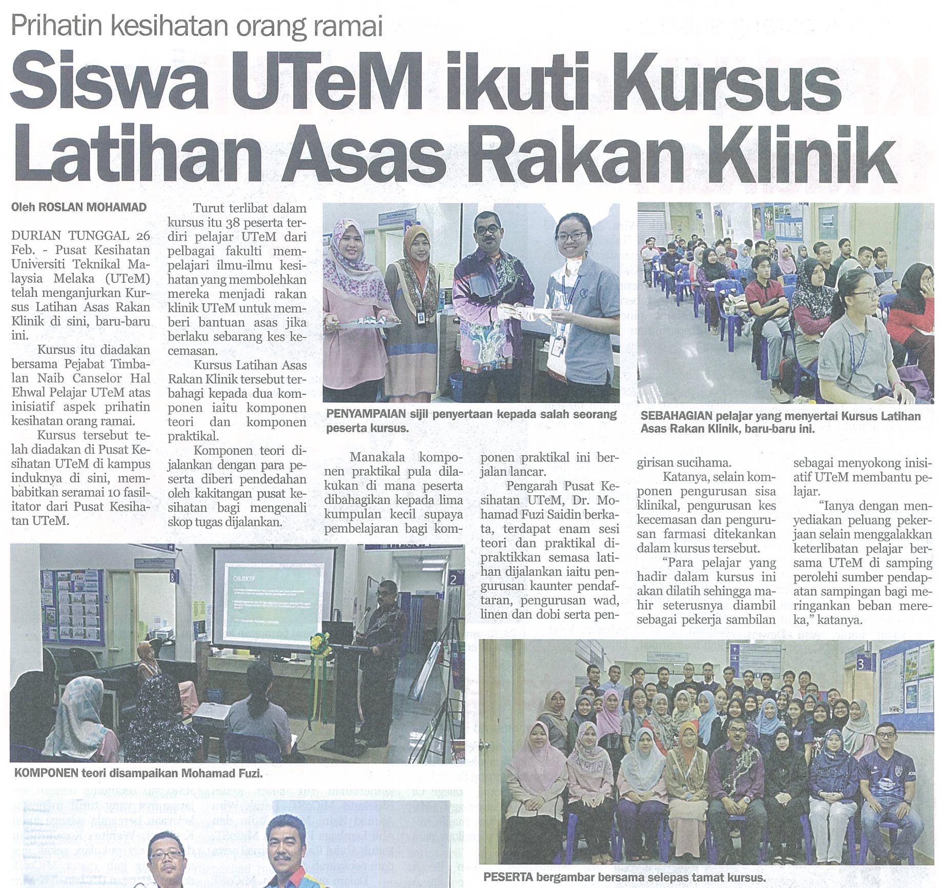 Siswa UTeM ikuti Kursus Latihan Asas Rakan Klinik