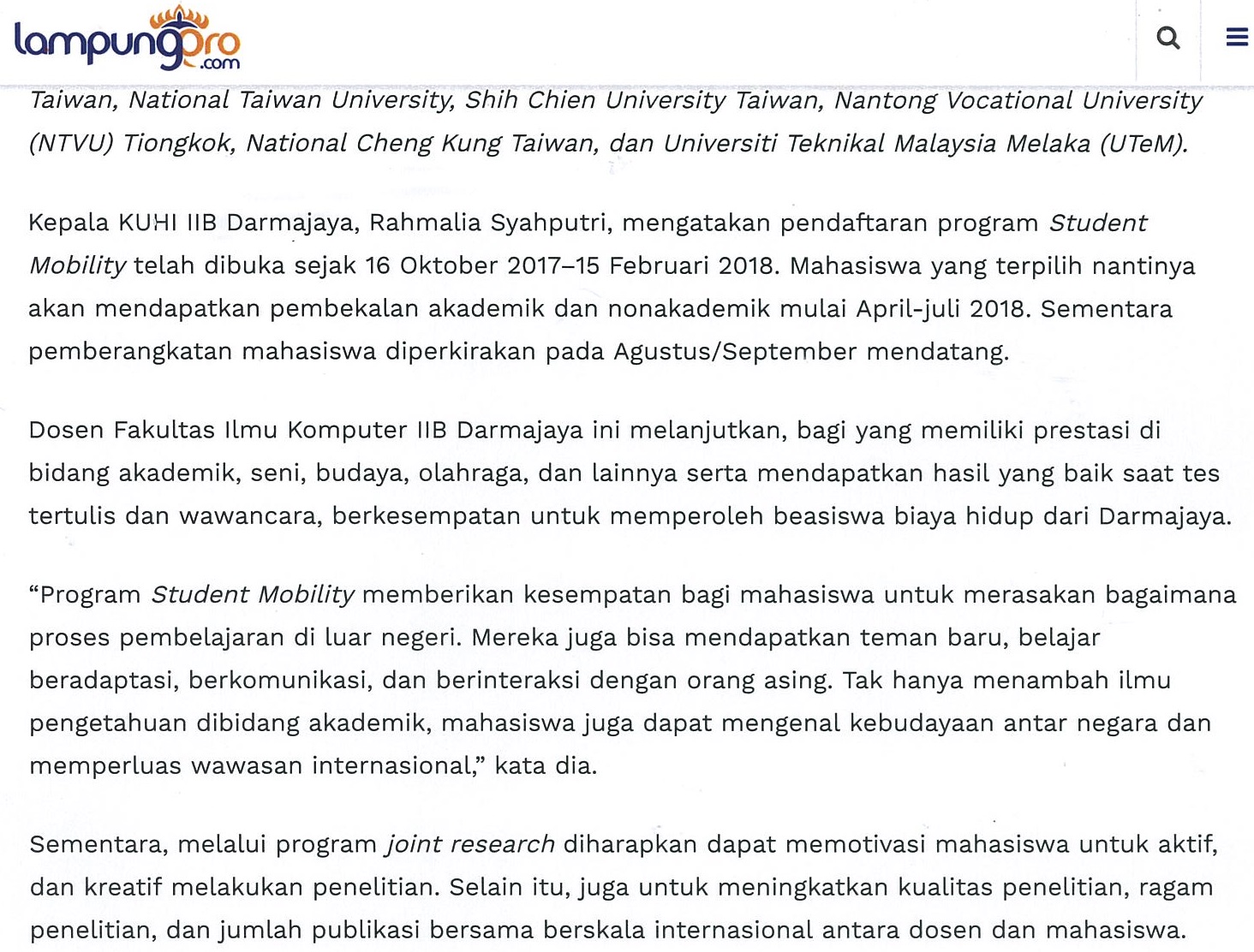 24 mahasiswa IIB Darmajaya ikuti seleksi program international di 6 negara