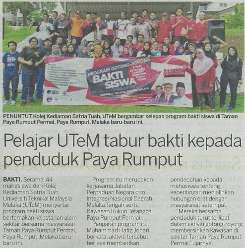 Pelajar UTeM tabur bakti kepada penduduk Paya Rumput