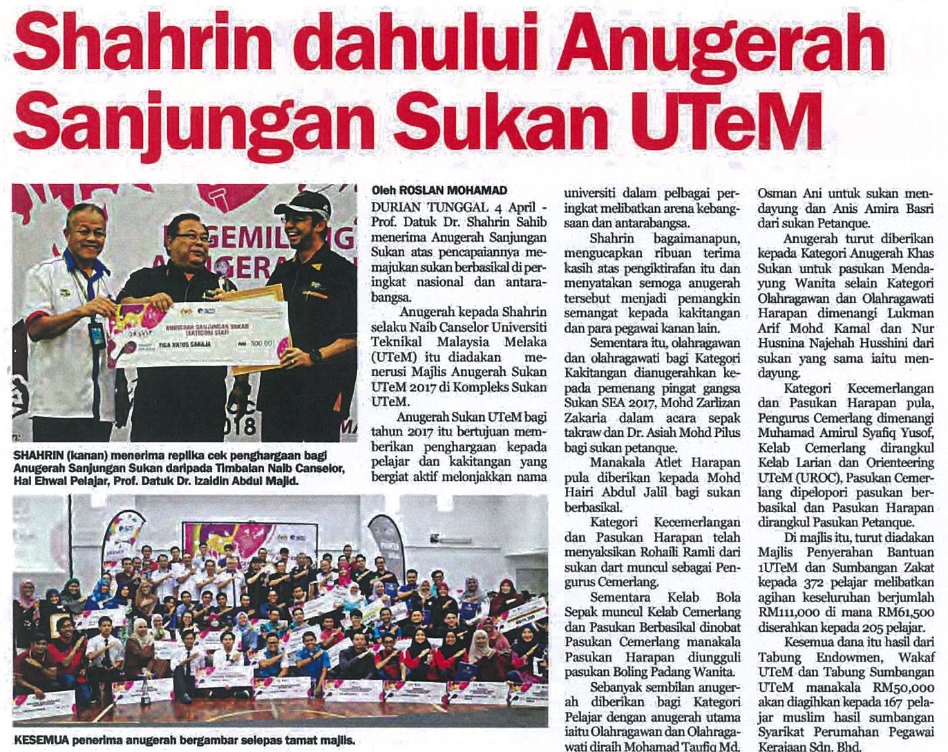 Shahrin dahului Anugerah Sanjungan Sukan UTeM