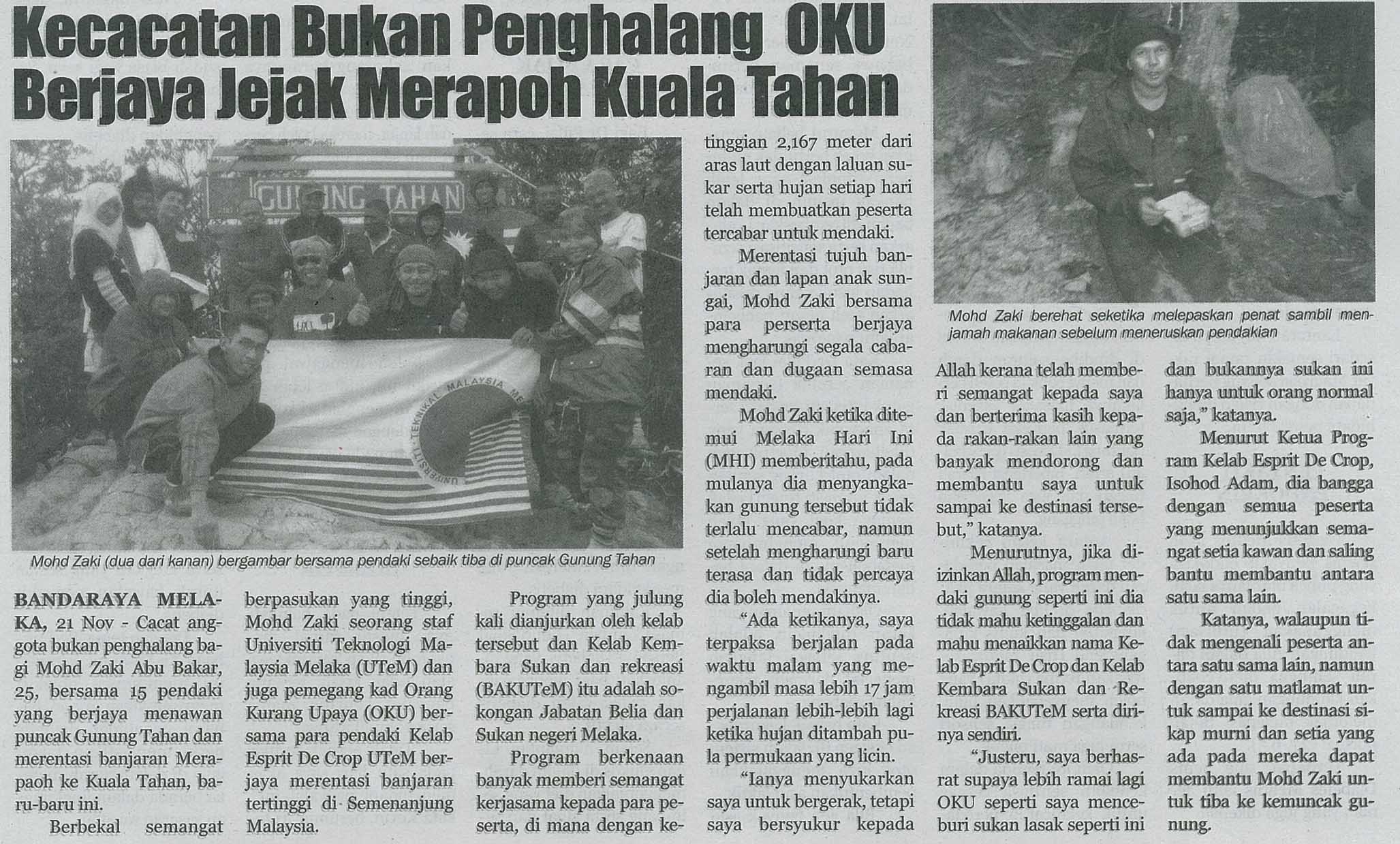 Kecacatan Bukan Penghalang OKU Berjaya Jejak Merapoh Kuala Tahan