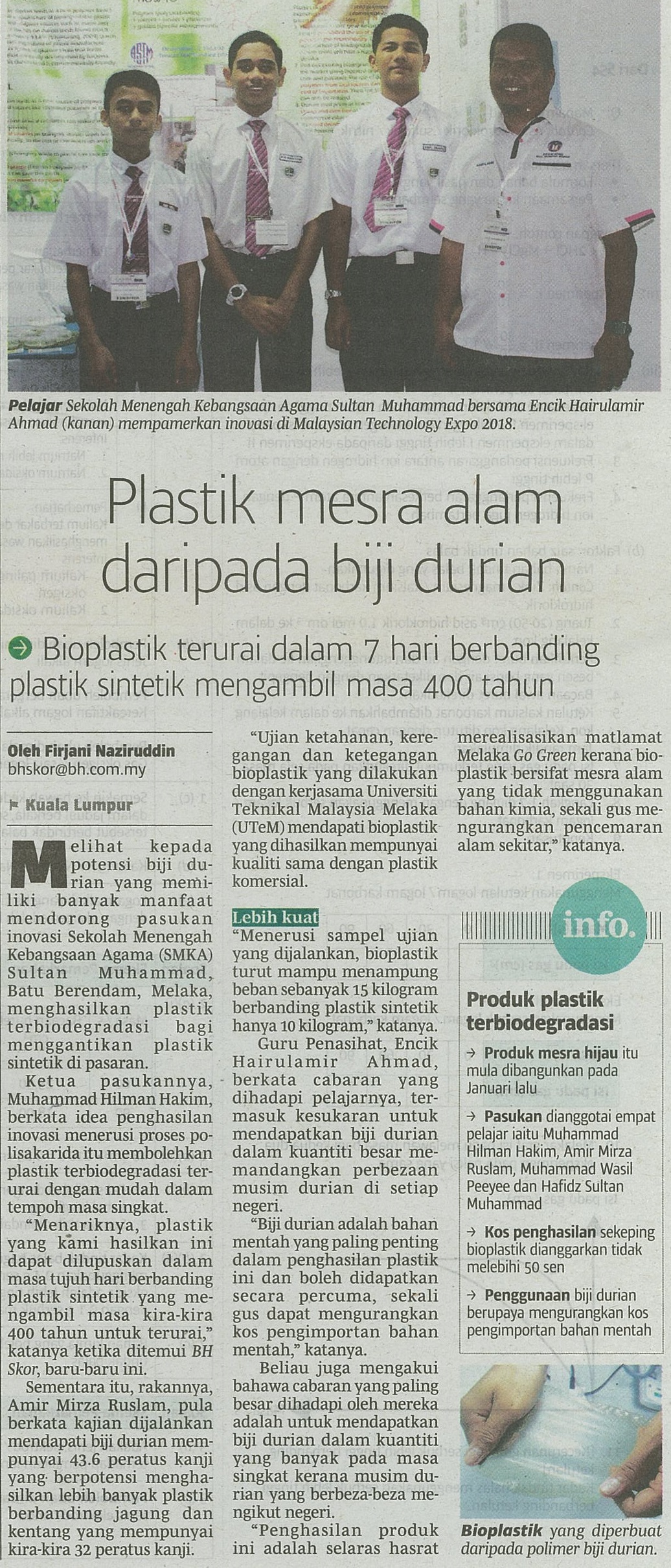 Plastik mesra alam daripada biji durian