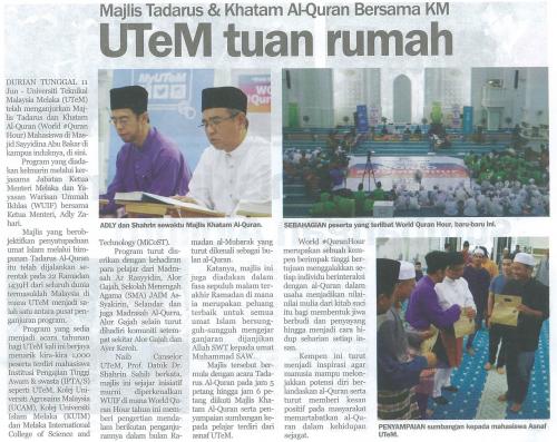 Majlis Tadarus & Khatam Al-Quran bersama KM, UTeM tuan rumah