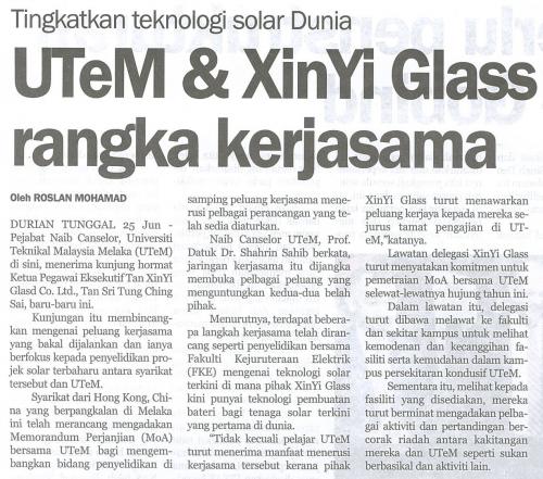 UTeM & XinYi Glass rangka kerjasama
