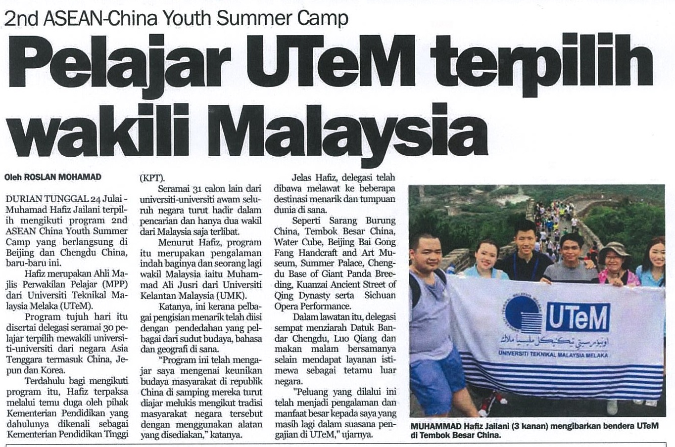 Pelajar UTeM terpilih wakili Malaysia