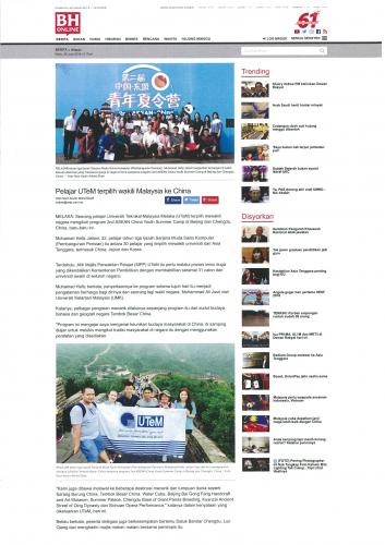 PELAJAR UTeM TERPILIH WAKILI MALAYSIA KE CHINA