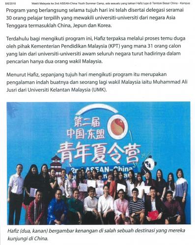 Wakili Malaysia ke 2nd Asean-China Youth Summer Camp, ada sesuatu yang takkan Hafiz lupa di Tembok Besar China