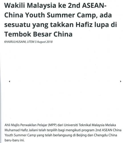 Wakili Malaysia ke 2nd Asean-China Youth Summer Camp, ada sesuatu yang takkan Hafiz lupa di Tembok Besar China