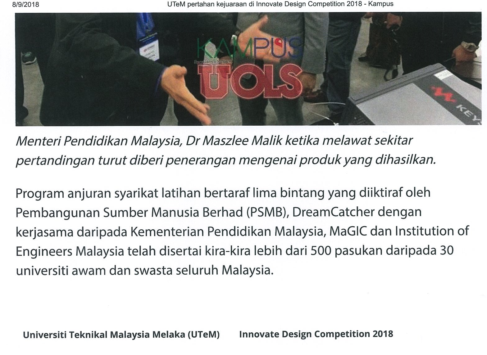 UTeM pertahan kejuaraan di Innovate Design Competiton 2018 (Part4)
