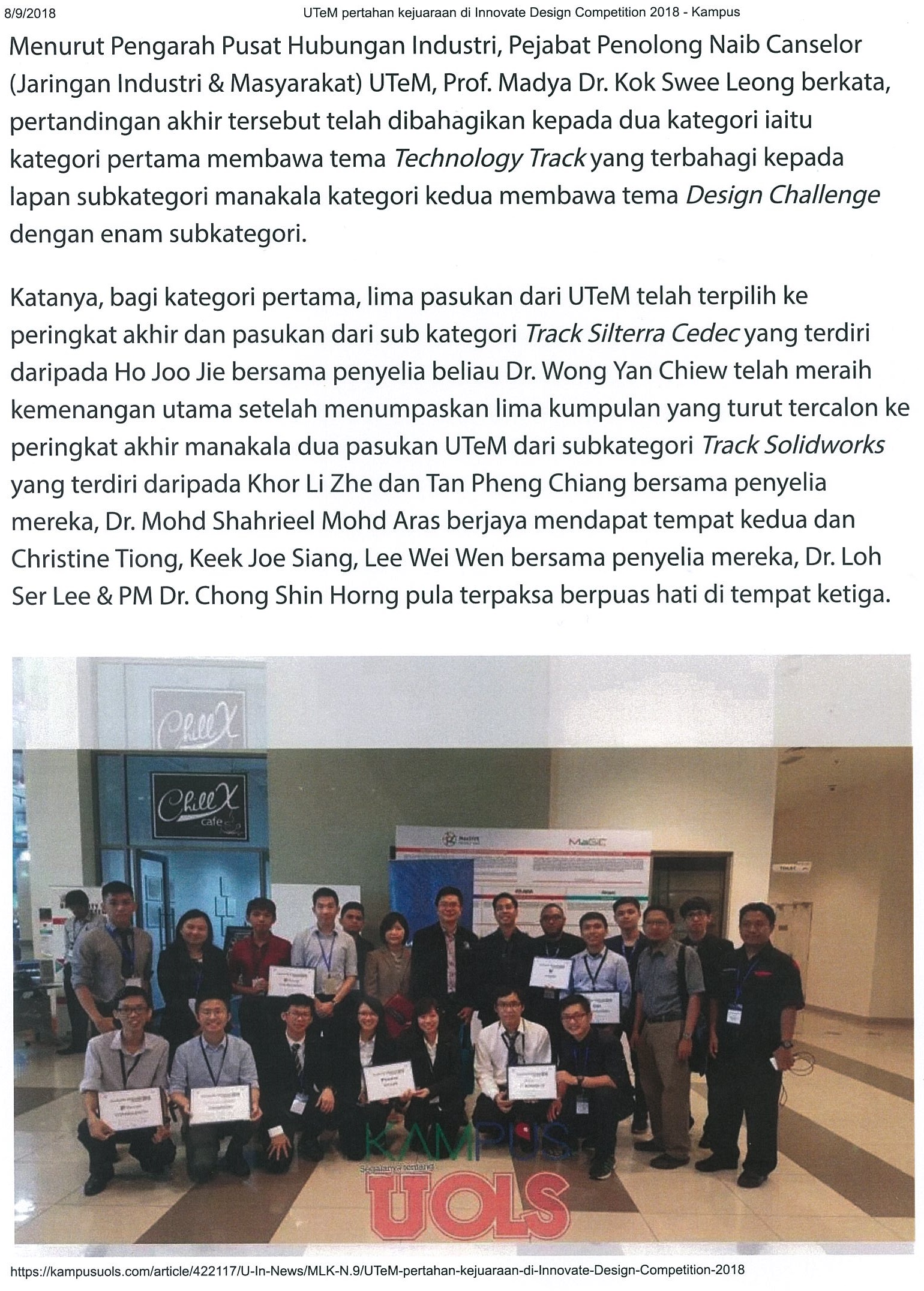 UTeM pertahan kejuaraan di Innovate Design Competiton 2018 (Part2)